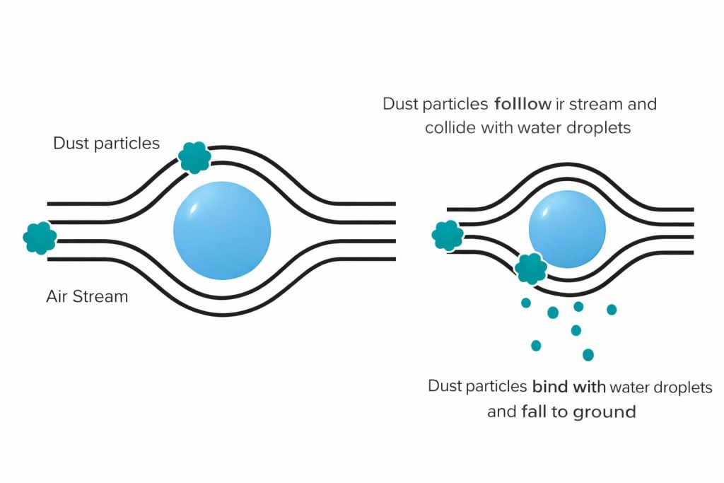 Produces a fine mist via precision spray nozzles to capture airborne dust particles
