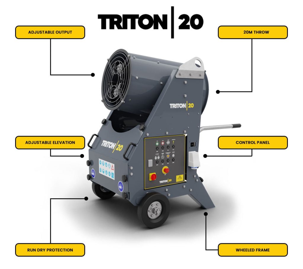 For projects requiring a compact, effective, and flexible dust suppression solution, the Triton 20 Dust Cannon offers a proven approach to managing airborne dust. Whether used as a standalone unit or alongside other dust control measures, it provides reliable performance that supports safer working conditions, improved air quality, and better site compliance.